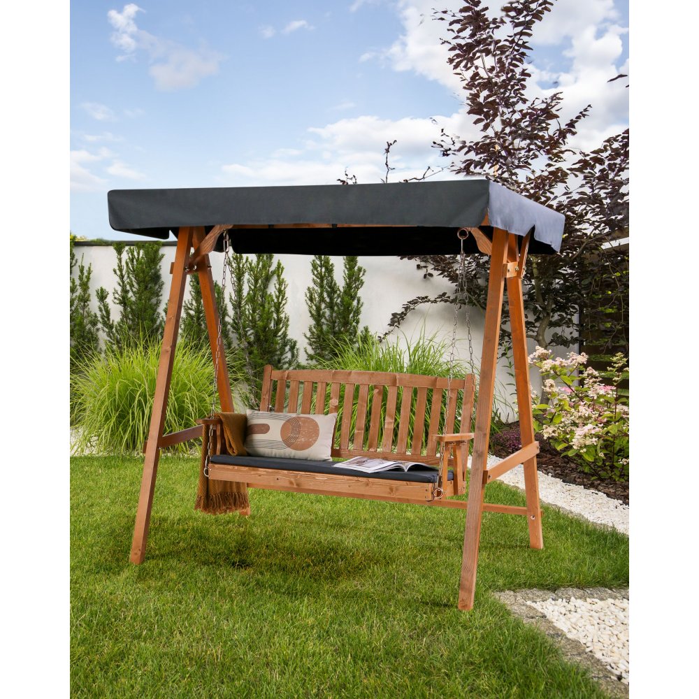 Goditi l'aria aperta con questa splendida altalena in legno di abete, dotata di un tetto resistente ai raggi UV per proteggerti dal sole. Il design senza tempo e la struttura robusta la rendono un'aggiunta perfetta a qualsiasi giardino, offrendo uno spazio confortevole per rilassarsi. Ideale per aggiungere un tocco di stile e tranquillità al tuo spazio esterno.