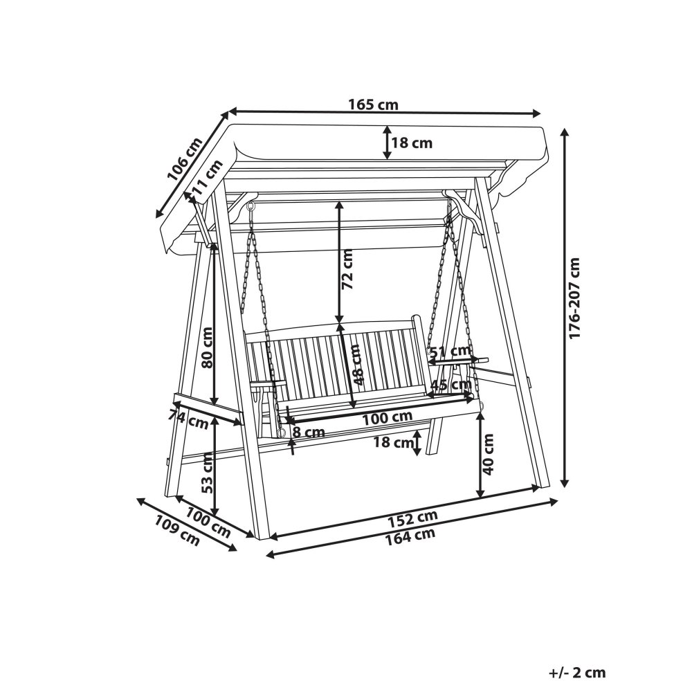 Rilassati e lasciati cullare da questa affascinante altalena in legno, realizzata in resistente legno di abete. Il tetto resistente ai raggi UV e agli agenti atmosferici la rende adatta a ogni stagione, mentre il design senza tempo si adatta a diversi stili di arredamento da esterno. Che tu stia leggendo un libro o chiacchierando in compagnia, questa altalena aggiungerà un tocco di comfort ed eleganza al tuo giardino.