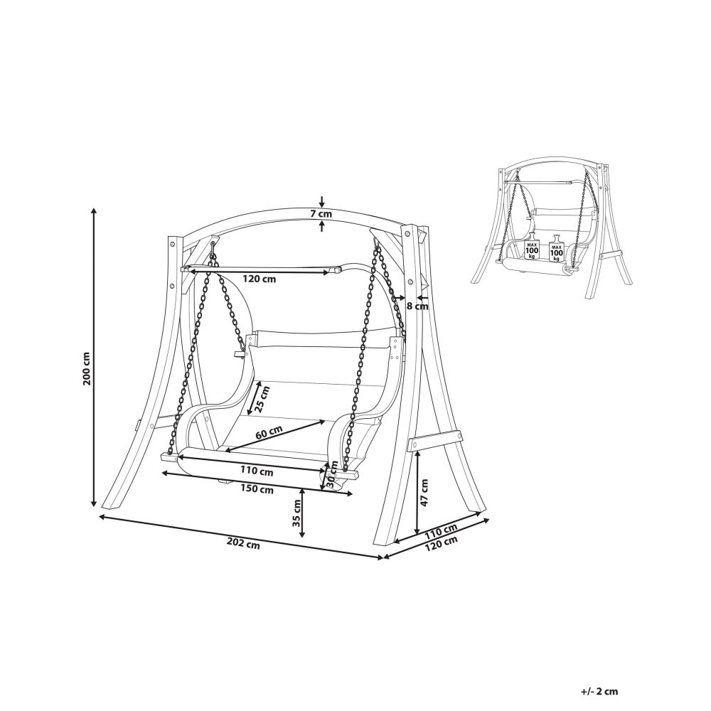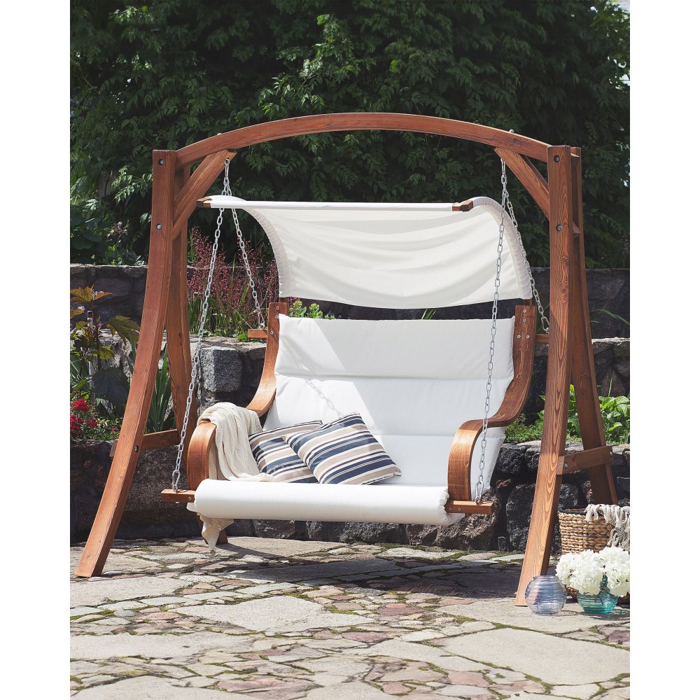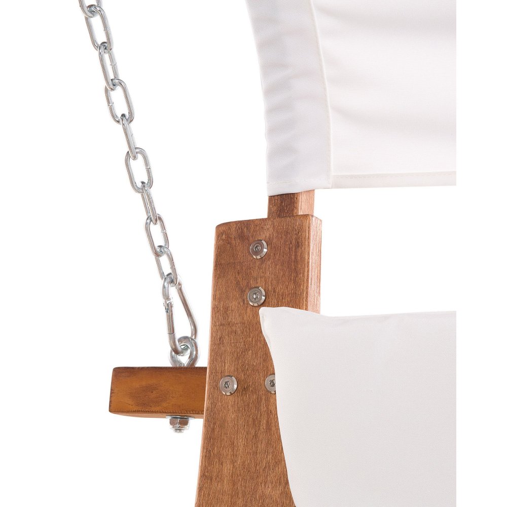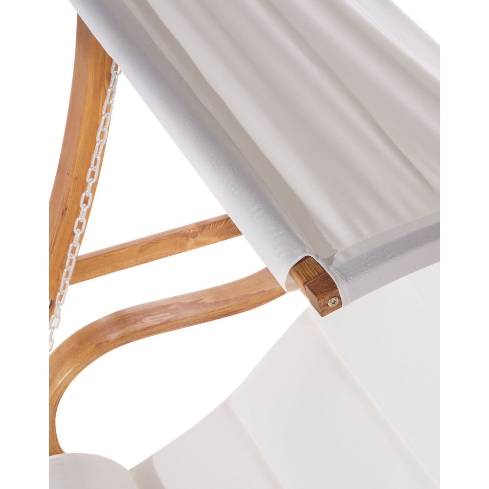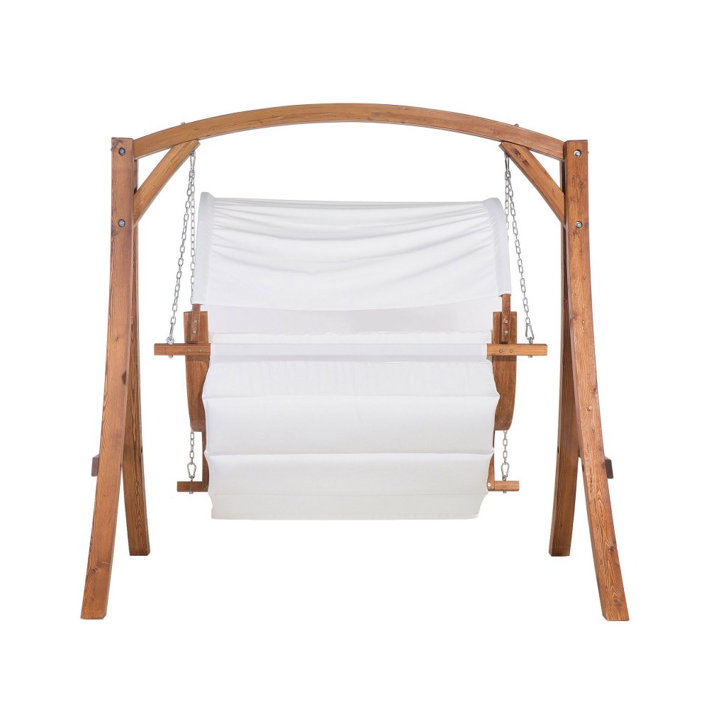 Questo eccezionale dondolo da giardino aggiunge un'atmosfera affascinante a qualsiasi giardino! Il design unico e la forma leggermente curva si combinano con un'elevata funzionalità. La struttura in legno per tutte le stagioni è resistente ed è disponibile in una calda finitura in teak che accentua la tappezzeria bianca. Il rivestimento del sedile di facile manutenzione può essere pulito con una spugna umida. E' eccezionalmente stabile e confortevole. Una catena e clip di sospensione sono realizzate in acciaio.
