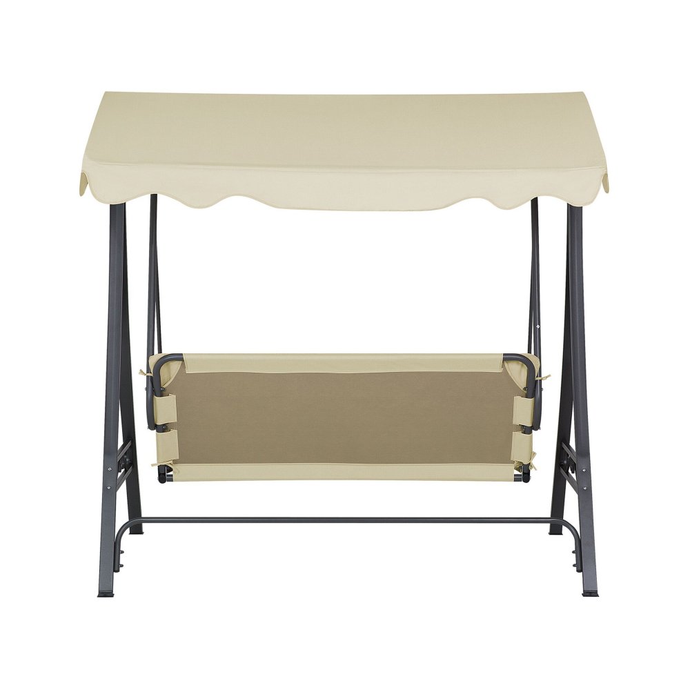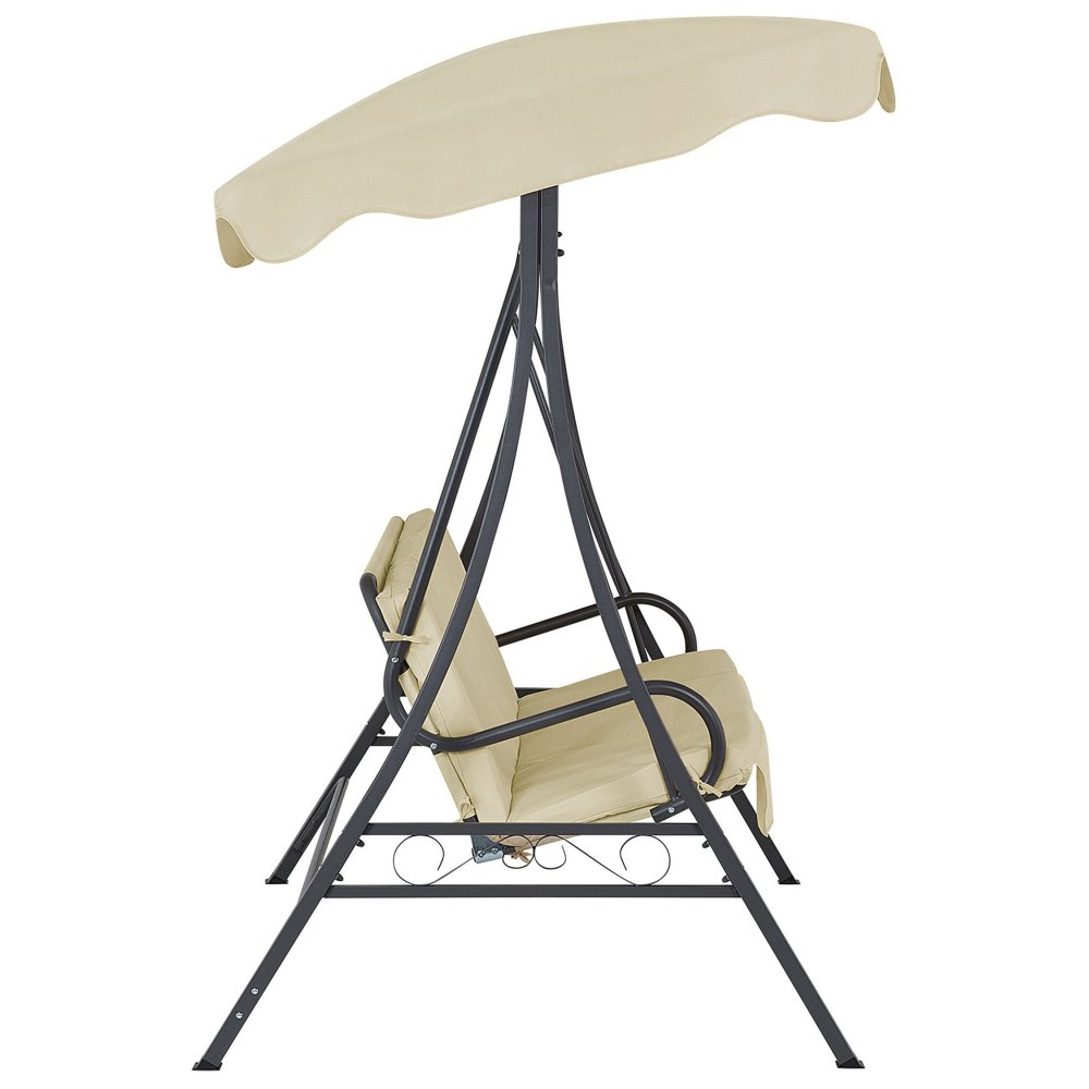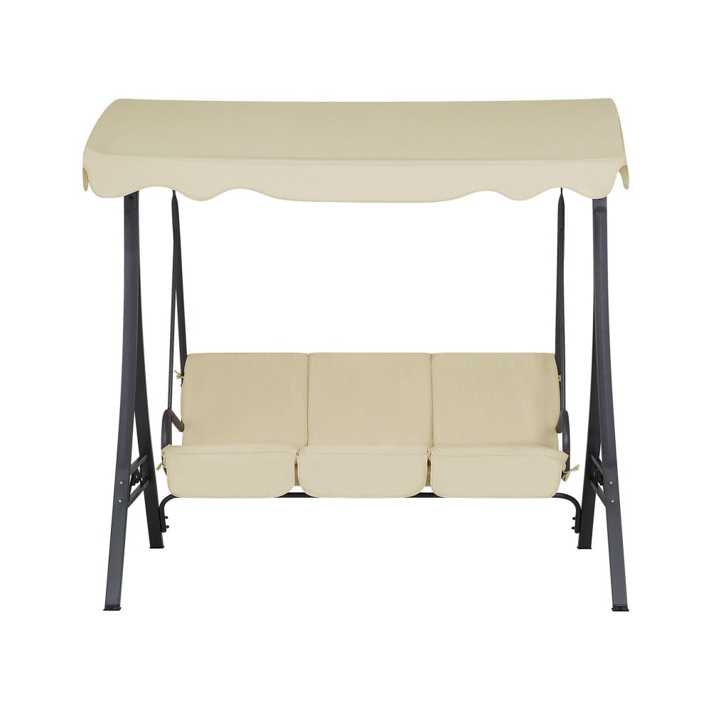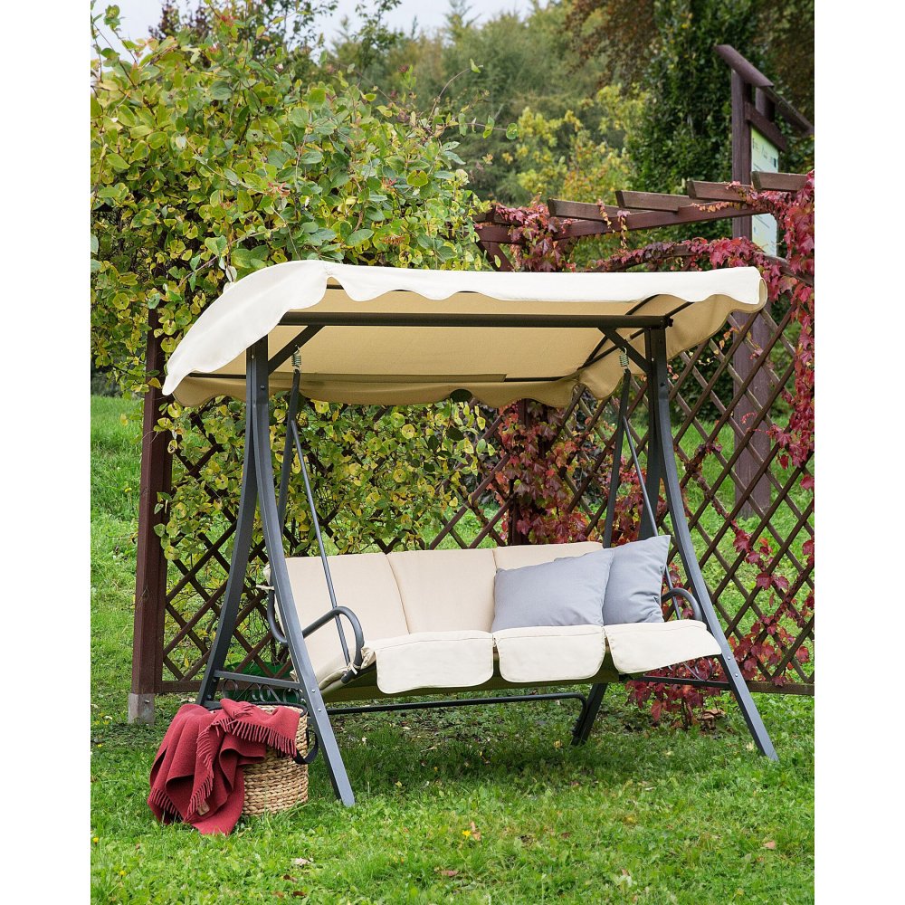Rendi ogni istante all'aperto ancora più piacevole con questo delizioso dondolo da giardino. Sostenuto da stabili gambe larghe e da un robusto telaio in acciaio verniciato a polvere, l'ampio sedile imbottito può accogliere comodamente fino a 3 persone. Il delicato baldacchino offre la massima protezione dai raggi UV, e proietta un'ombra fresca, mentre i cuscini sfoderabili la rendono davvero facile da pulire. Fusione ideale tra design classico e moderno, questo versatile dondolo, saprà integrarsi a ogni stile d'arredo.