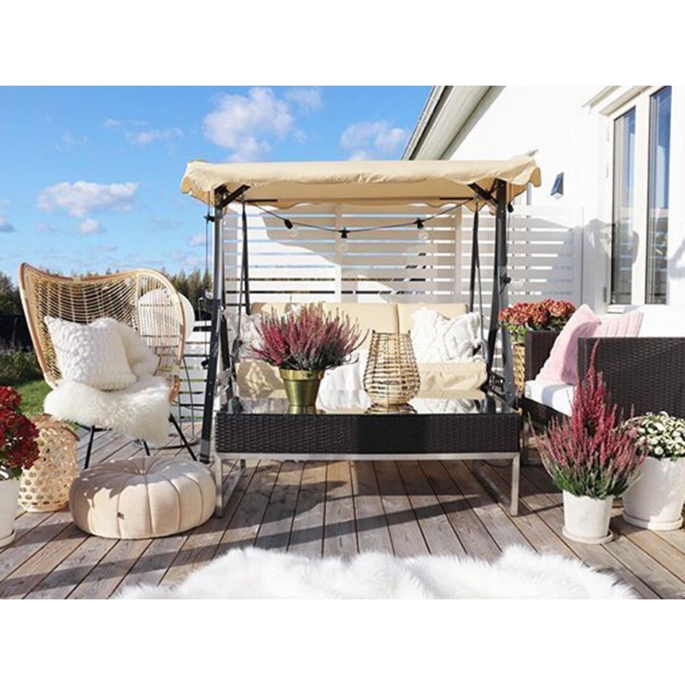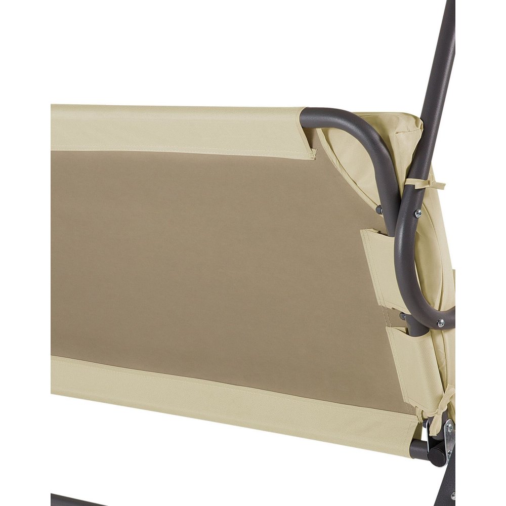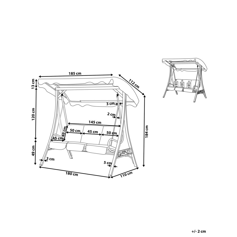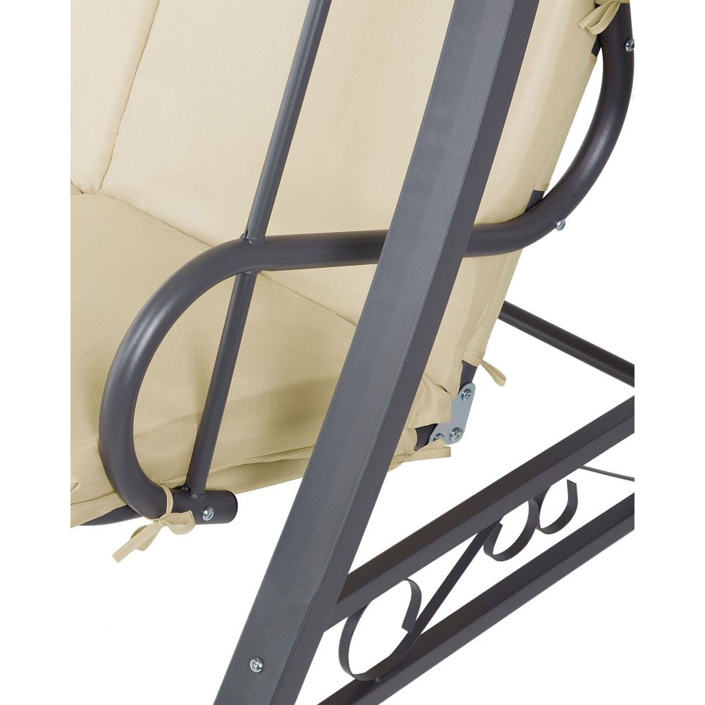 Rendi ogni istante all'aperto ancora più piacevole con questo delizioso dondolo da giardino. Sostenuto da stabili gambe larghe e da un robusto telaio in acciaio verniciato a polvere, l'ampio sedile imbottito può accogliere comodamente fino a 3 persone. Il delicato baldacchino offre la massima protezione dai raggi UV, e proietta un'ombra fresca, mentre i cuscini sfoderabili la rendono davvero facile da pulire. Fusione ideale tra design classico e moderno, questo versatile dondolo, saprà integrarsi a ogni stile d'arredo.