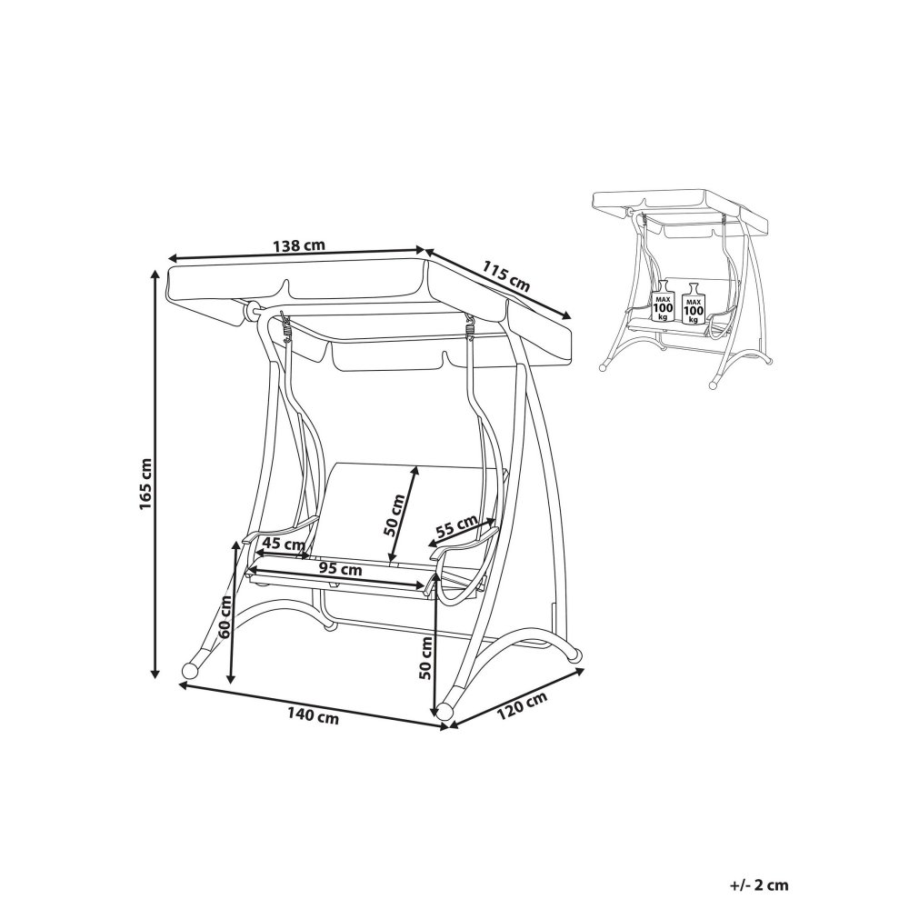 • Dimensioni seduta: 95 x 55 cm