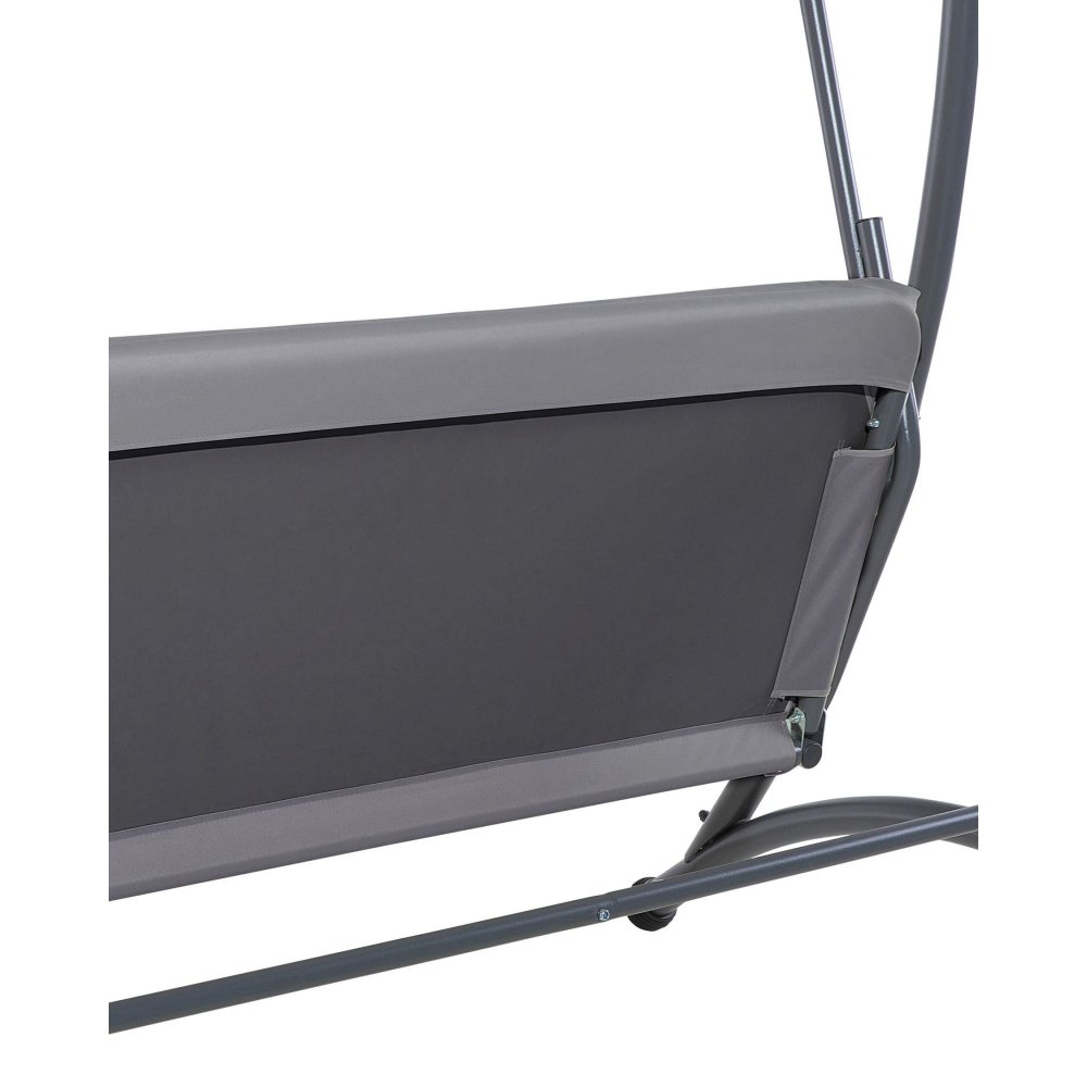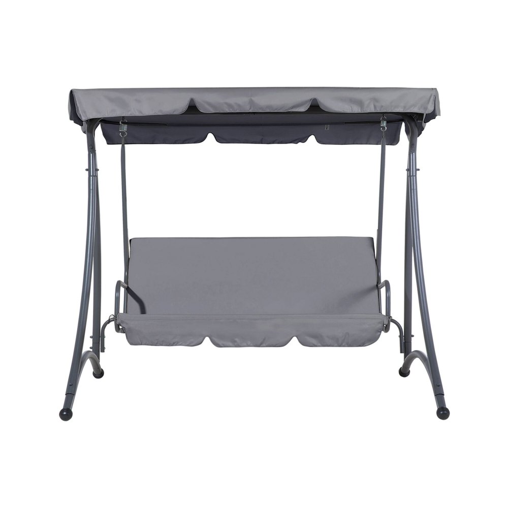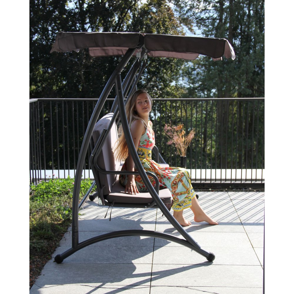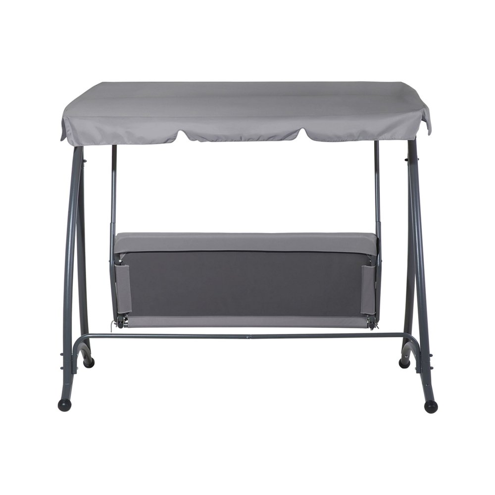 Rendi ogni istante all'aperto ancora più piacevole con questo delizioso dondolo da giardino. Sostenuto da stabili gambe larghe e da un robusto telaio in acciaio verniciato a polvere, l'ampio sedile imbottito può accogliere comodamente fino a 3 persone. Il delicato baldacchino offre la massima protezione dai raggi UV, e proietta un'ombra fresca. Fusione ideale tra design classico e moderno, questo versatile dondolo, saprà integrarsi a ogni stile d'arredo.