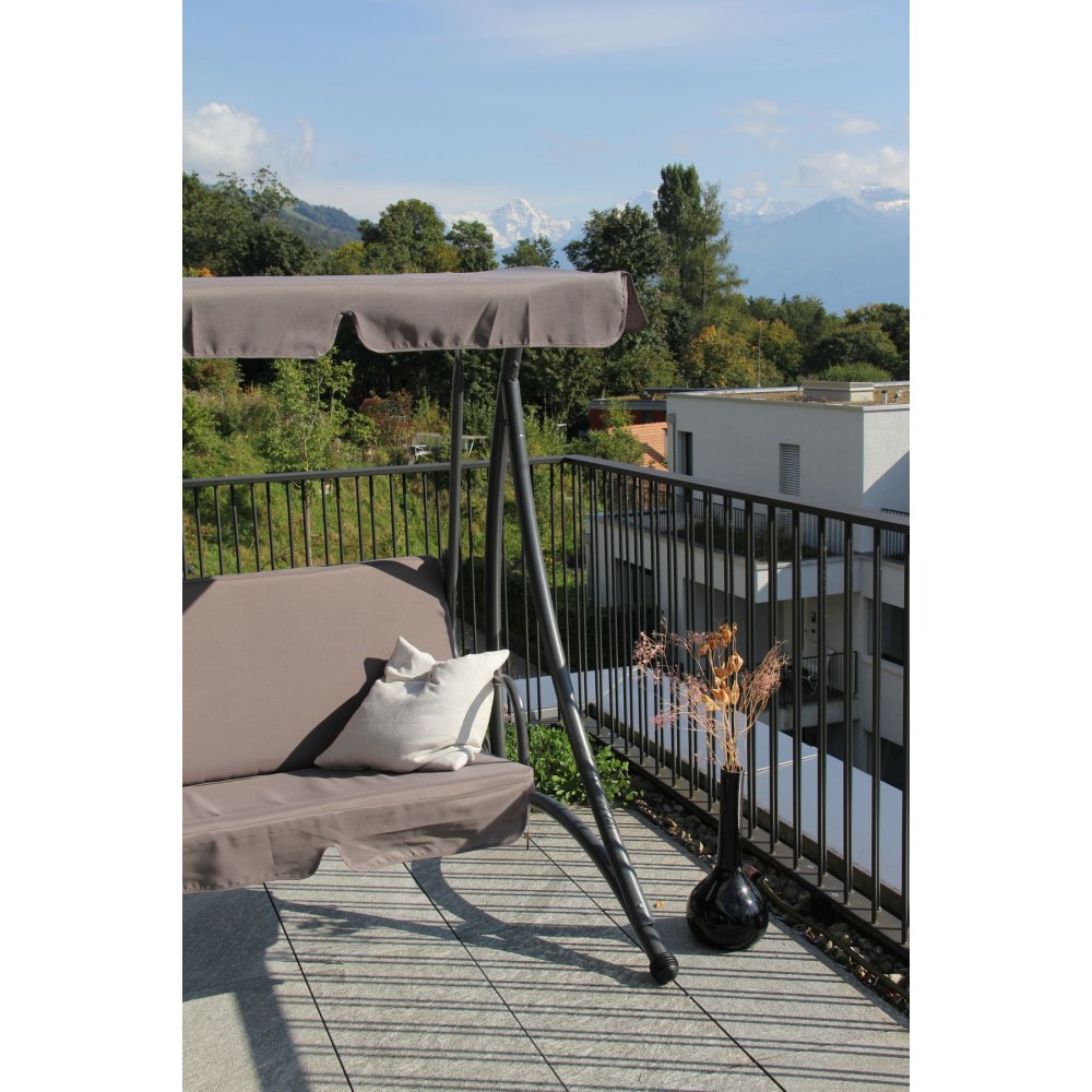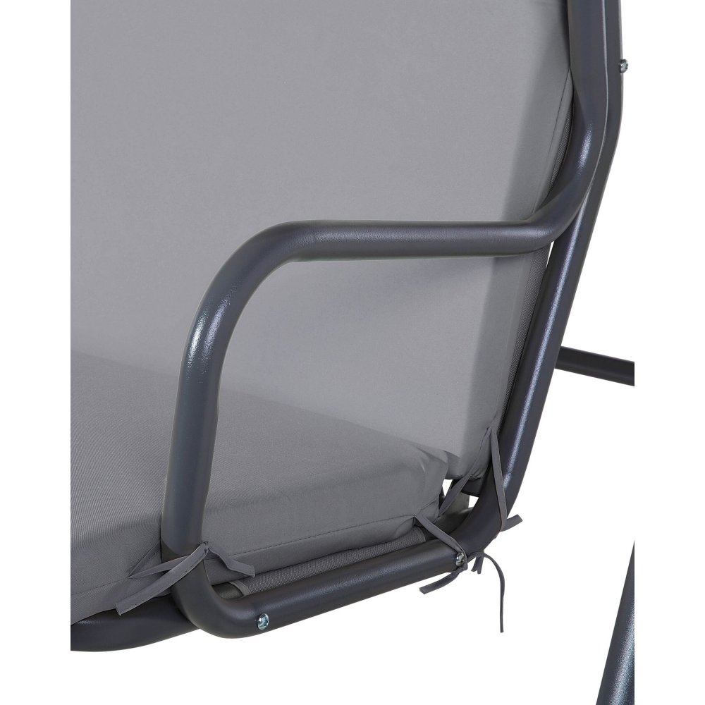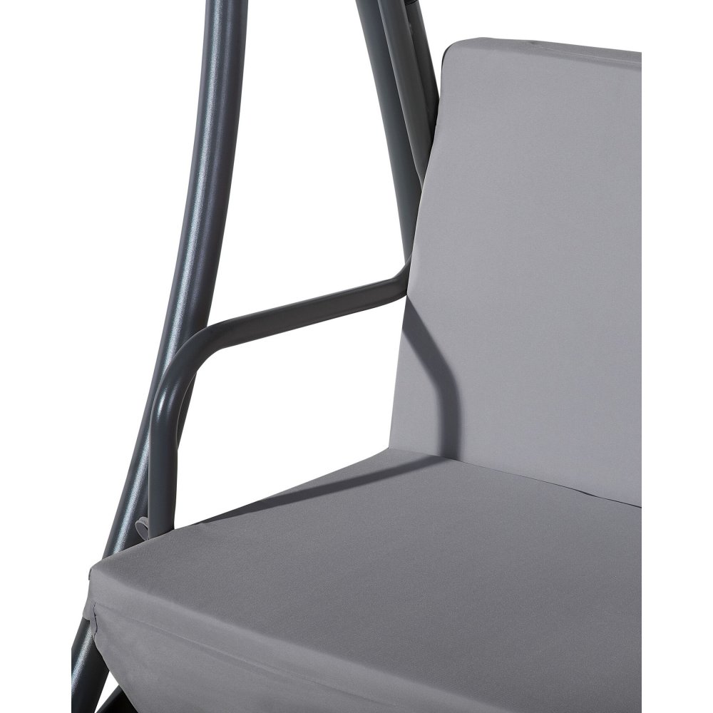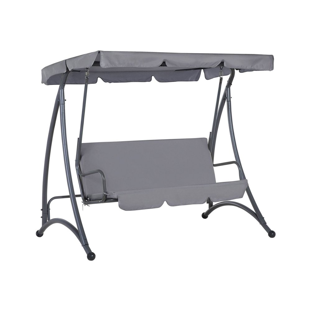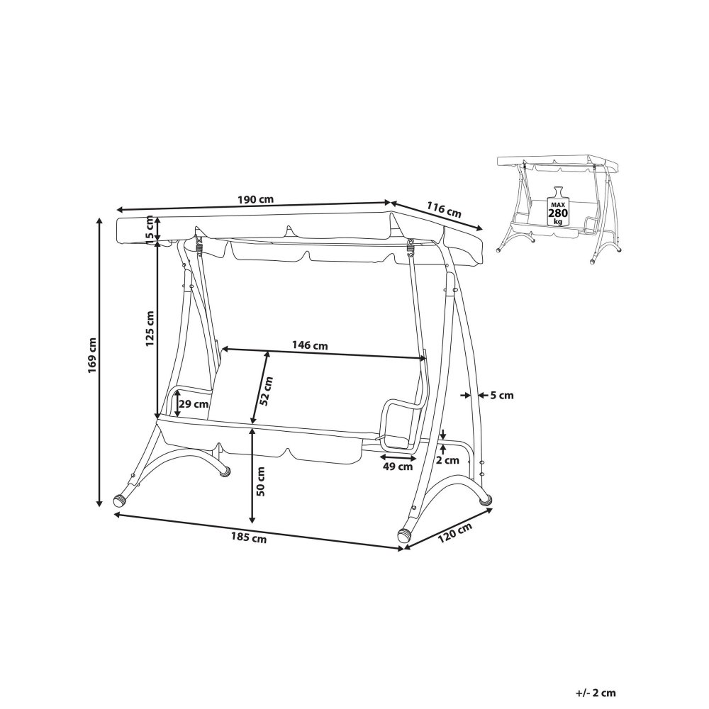 Rendi ogni istante all'aperto ancora più piacevole con questo delizioso dondolo da giardino. Sostenuto da stabili gambe larghe e da un robusto telaio in acciaio verniciato a polvere, l'ampio sedile imbottito può accogliere comodamente fino a 3 persone. Il delicato baldacchino offre la massima protezione dai raggi UV, e proietta un'ombra fresca. Fusione ideale tra design classico e moderno, questo versatile dondolo, saprà integrarsi a ogni stile d'arredo.