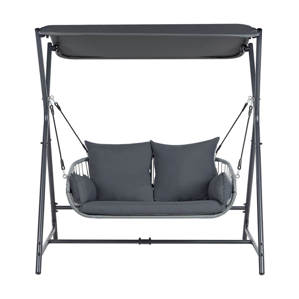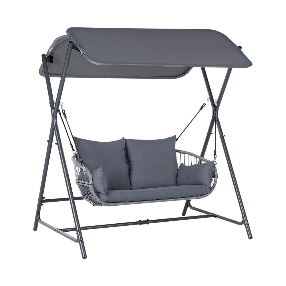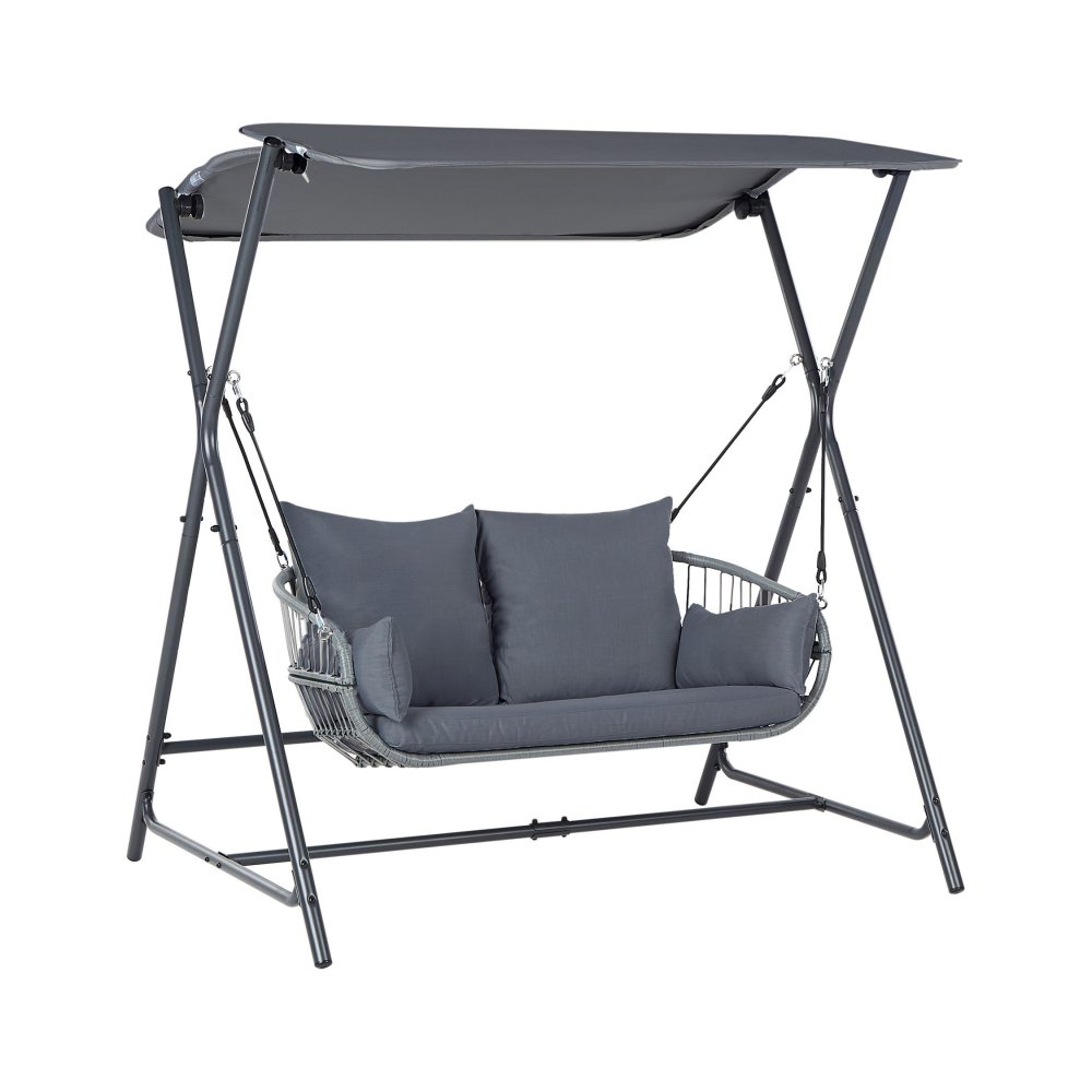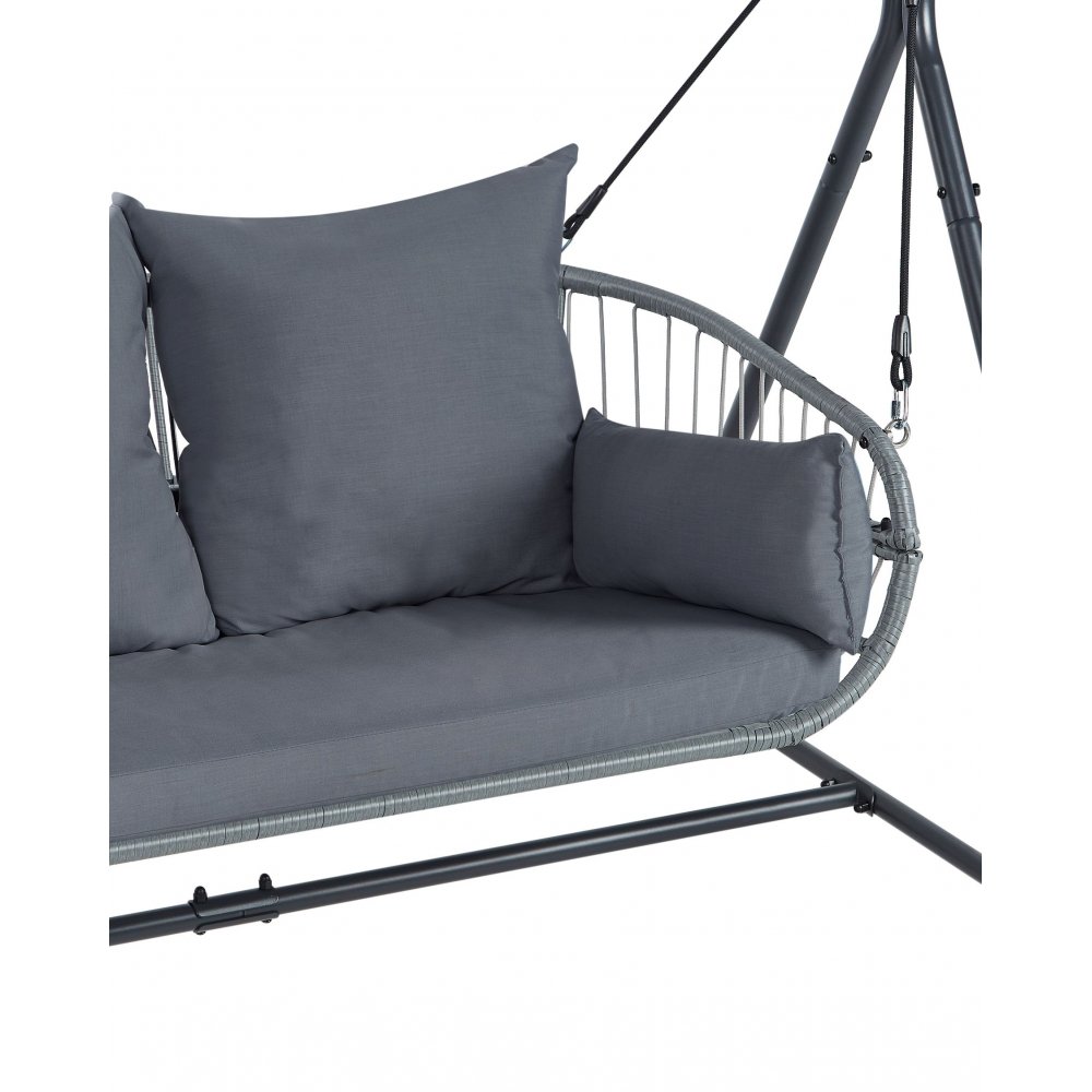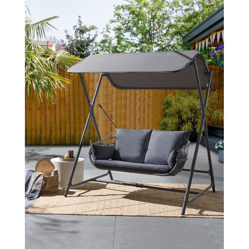 Trasforma il tuo giardino in un’oasi di relax con questa elegante altalena, progettata per offrire comfort e resistenza. La • Robusta struttura in acciaio con finitura a polvere garantisce una qualità durevole, mentre la seduta in rattan aggiunge un tocco di raffinatezza. I morbidi cuscini assicurano un comfort extra, rendendola il luogo perfetto per rilassarsi. Il telo parasole, suddiviso in due sezioni, può essere regolato separatamente, permettendoti di trovare la giusta quantità di ombra durante tutta la giornata.